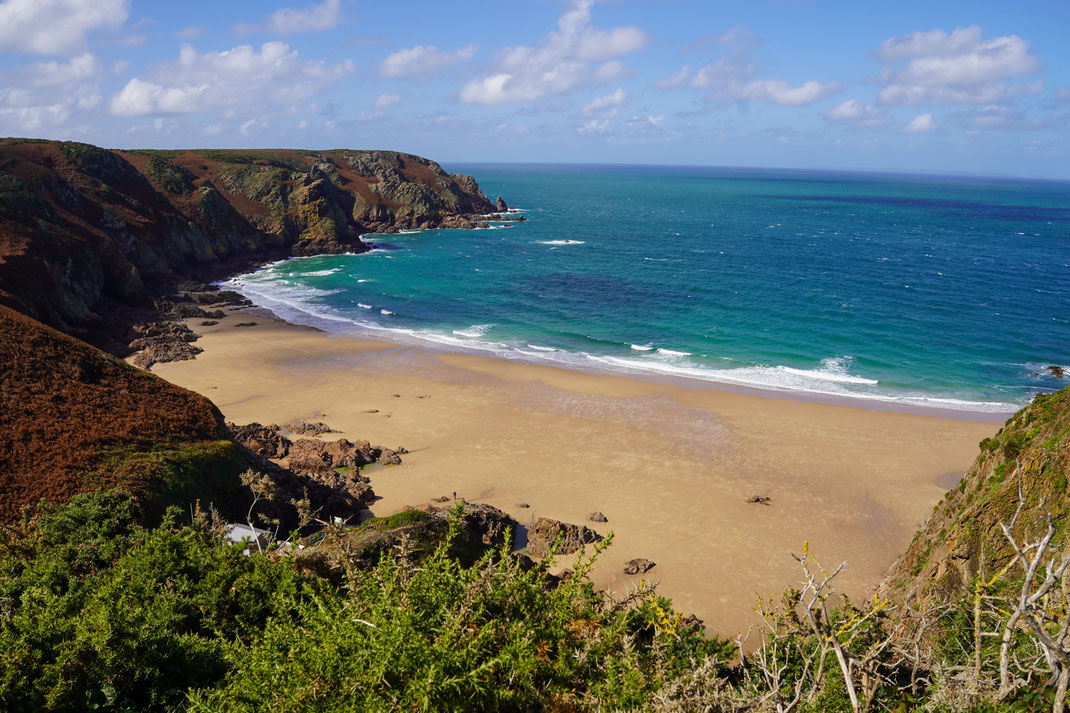 Wenn du auf Jersey bist, musst du unbedingt zur Plémont Bay fahren. Die Bucht liegt geschützt zwischen hohen Klippen und ist bei Ebbe ein kleines Paradies mit Höhlen, Felsen und feinem Sand. Bei Flut verschwindet der Strand fast komplett, also prüfe am besten vorher die Gezeiten. Ganz oben auf der Klippe stehen zwei riesige Puffin-Skulpturen, die auf den Schutz der Papageientaucher aufmerksam machen und ein tolles Fotomotiv sowie ein Symbol für Jerseys Engagement im Naturschutz sind. So süß, oder?